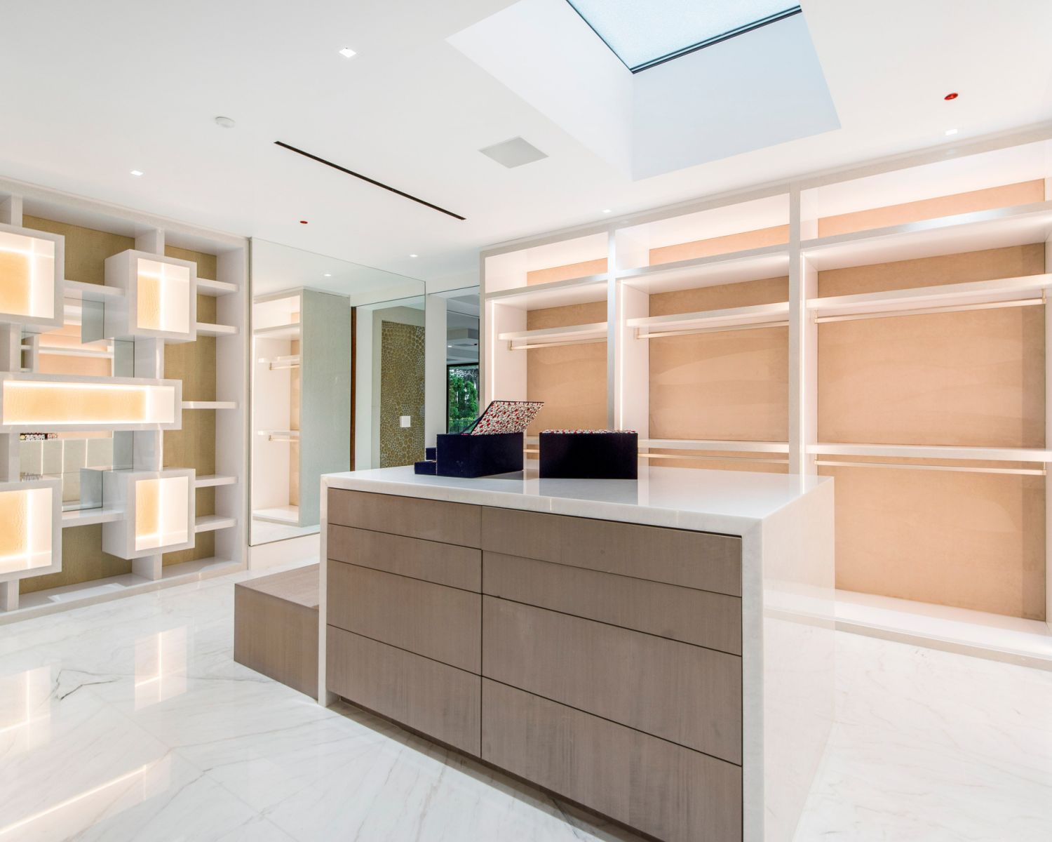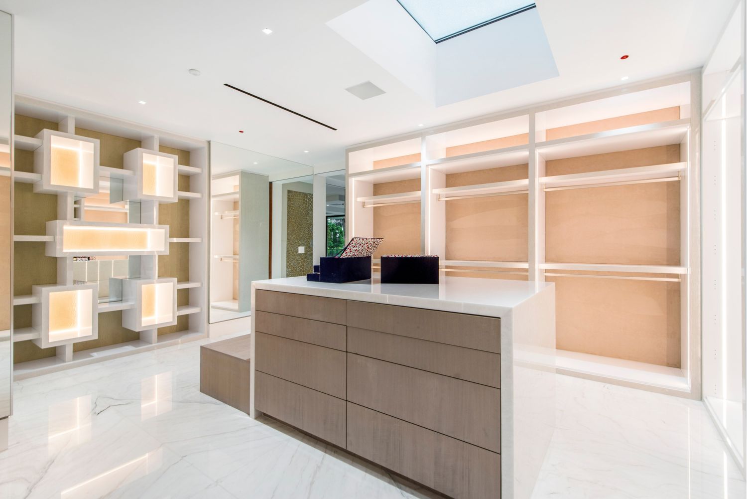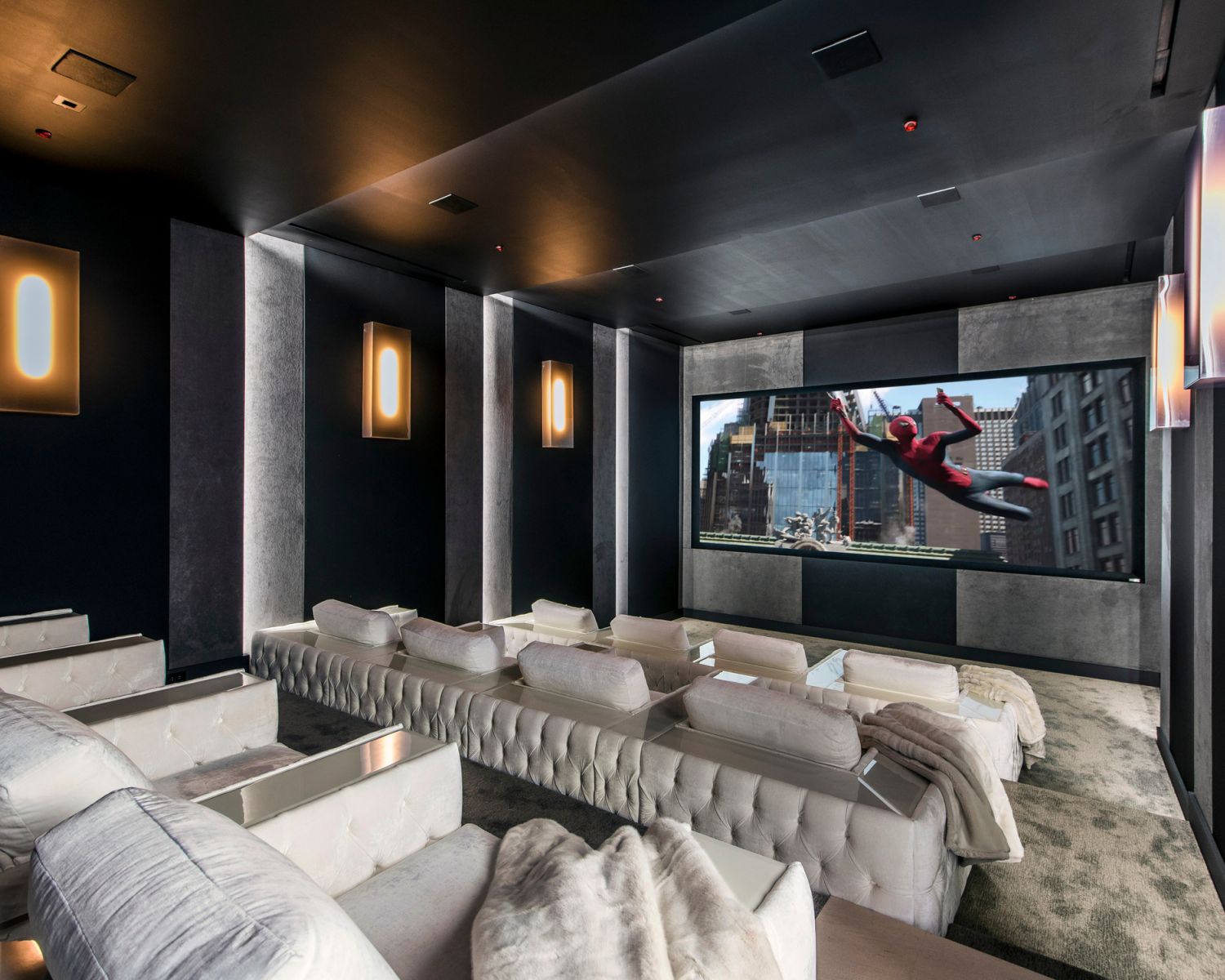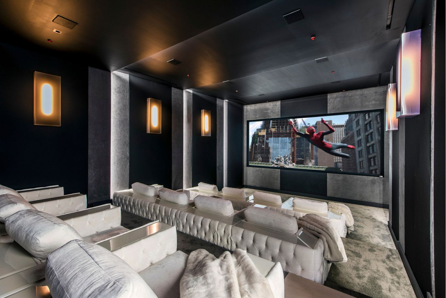 Not to be outdone by the amazing garage,AUDIOVISIONSworked closely with the developer to create a unique home theater experience. Behind a hidden door disguised as a bookcase lies a beautiful custom theater featuring a Barco Cinemascope 4K Laser projector, a 206" Seymour woven electrimask screen, Dolby Atmos with a Trinnov processor, and 23 ProAudio SCR Ultra High-Performance speakers with four subwoofers. All audio amplification is provided by ProAudio as well. The room was custom-calibrated by Paul Hales, the founder of ProAudio, to take the theater's sound performance to the next level. The room's interior, acoustics, and sound isolation were designed by Paradise Theaters. The thought and quality put into this space makes the room shine and produces an experience that must be seen and heard to be believed.