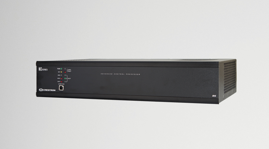 The AV3 control system impressively features optional control card expansion slots and an isolated subnet providing a Gigabit Ethernet LAN dedicated to Crestron devices.