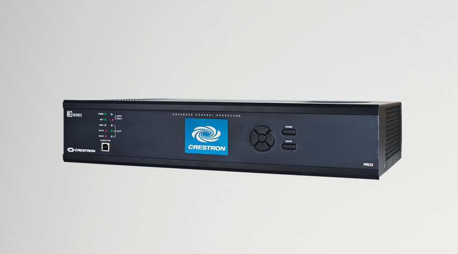 The PRO3 flagship control system features the largest amount of integrated control ports, easy expansion capability, a dedicated control subnet for Crestron devices and an enhanced color LCD front panel.